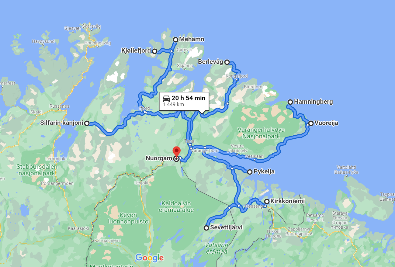 Oikeastaan matka Pohjois-Norjaan talvella ei ole riippuvainen muusta kuin renkaista, tosin talvella emme kyllä teltassa yöpyisi, vaan joutuisimme miettimään ensimmäistä kertaa Norjan puolella muita majoitusratkaisuja.