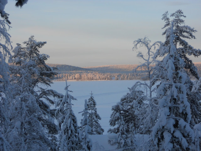 Mökiltä oli ihanat lumiset maisemat Äkäslompolo järvelle. Kävimme useana iltana koirien kanssa jäällä iltalenkillä ja näimme monena iltana revontulia. Revontulet ovat minulle suomalaisenakin aika eksoottinen juttu, voin kuvitella kuinka eksoottisia ne on ulkomaalaiselle. Jäällä taisi muutamana iltana olla onnellisia Aasialaisia. Kyllä minäkin olisin haltioissani jos matkustaisin toiselle puolelle maapalloa vain katselemaan tähtiä taivaalla (suurkaupungeissa ei näy tähti taivasta) tai kauniita värikkäitä valoilmiöitä taivaalla joita on mahdotonta nähdä omassa maailmanosassa, vaikkei toisaalta kaikki Suomalaisetkaan ole nähneet revontulia kotimaassa.  Mielestäni Suomen Lappi on ehdottomasti niitä maailman kauneimpia paikkoja. Jos katsoo Lappia ulkomaalaisen silmin, niin onhan se ihan mieletön!