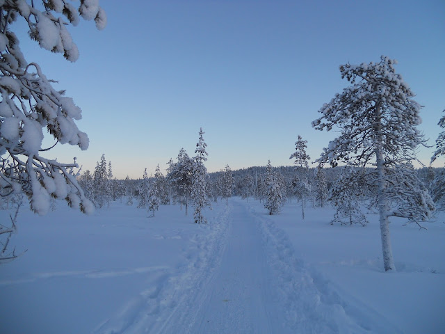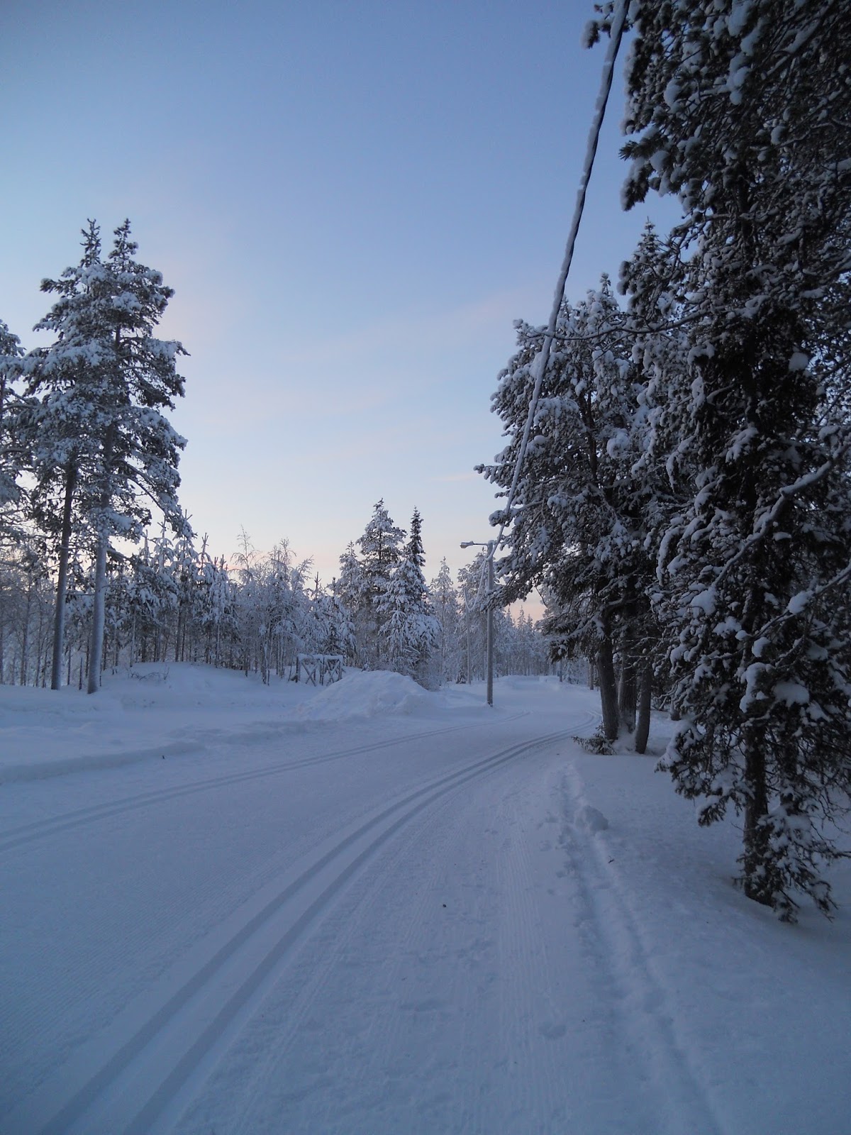 Lapissakin -29 astetta ”ei tunnu missään”. Ilma on sen verran kuiva, että pystyi helposti tehdä pidemmän lenkin kun pysyi liikkeessä ja oli oikea vaatetus, oli virkistävää vain. Kasvoihin oli vain kylmä.