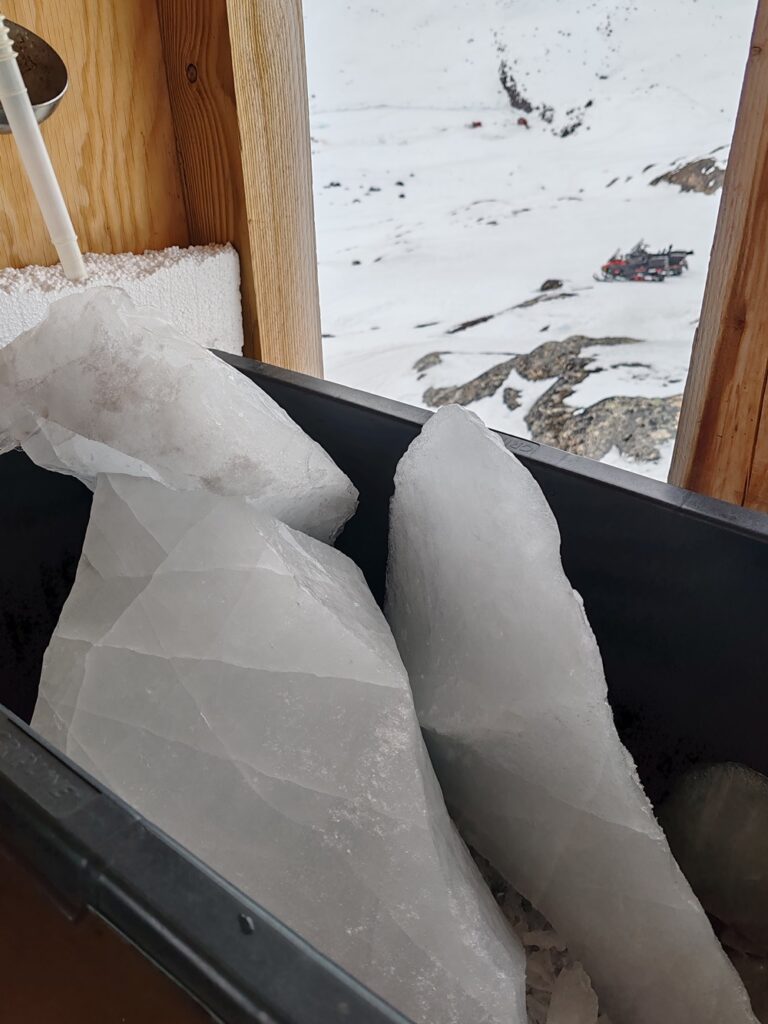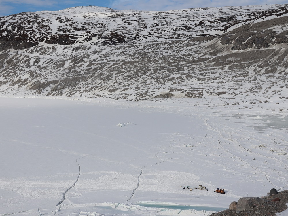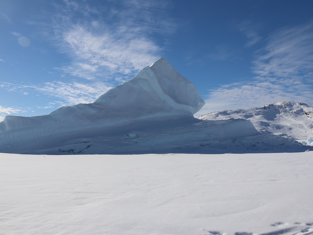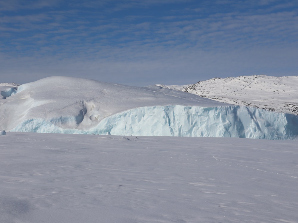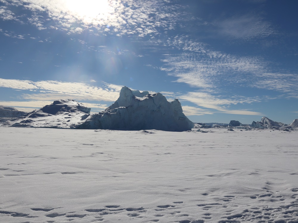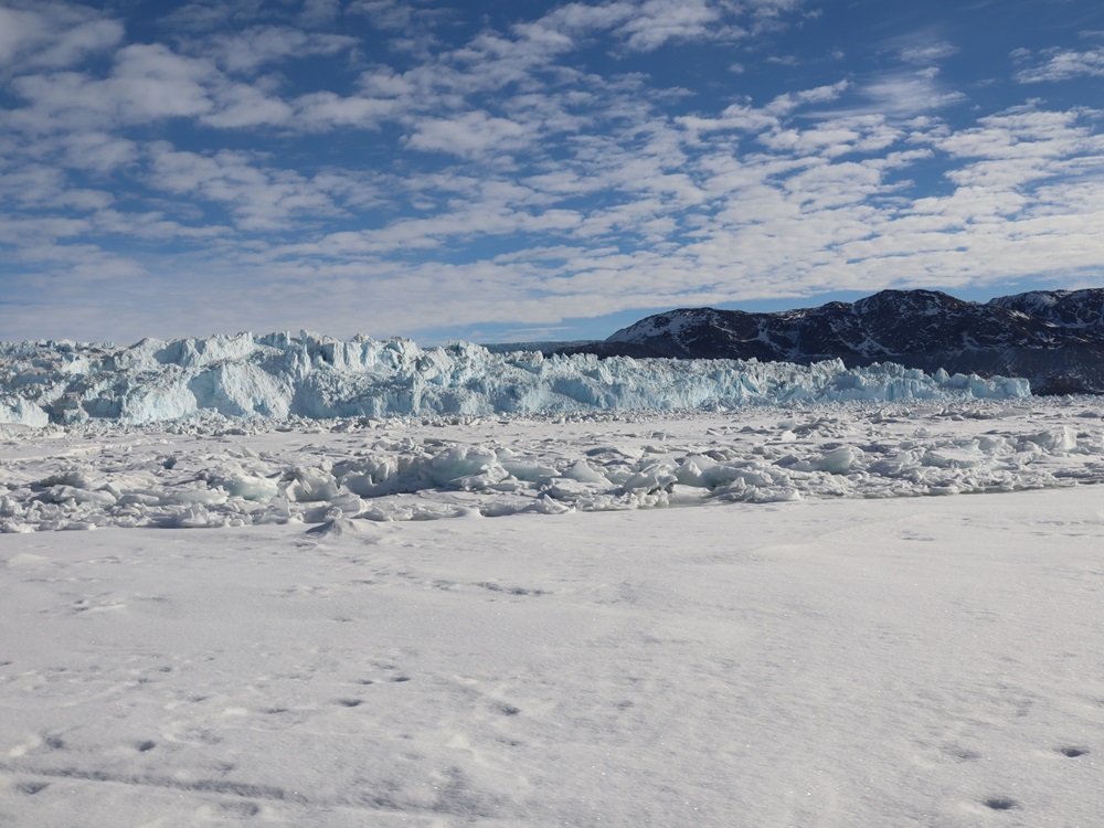 Kuuntelimme myös jäätä, sillä se piti erilaisia ääniä. Jostain kaukaa kuului iso romahdus ja maa jalkojen alla hieman tärisi, aivan kuin joka työmaapommi olisi räjäytetty. Todellisuudessa jossain kauempana romahti taas iso jäälohkare ja siitä lähti kova ääni ja maa tärisi sen painosta.