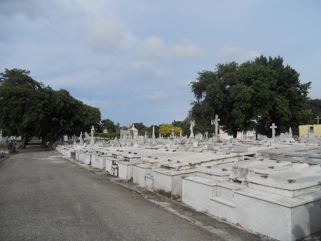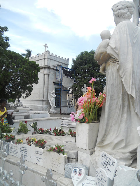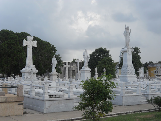 Me kävimme aikoinaan myös Columbuksen hautausmaalla Havannassa käydessämme. Me päätimme taksin sijaan mennä kävellen ja tutustua ympäristöön myös vanhan kaupungin ulkopuolella. Näyttävä hautausmaa tosiaan. Me emme tosin saaneet opasta, joten ehkäpä käytännöt vaihtelevat päivästä riippuen. Itselläni kaikkein mieleenpainuvimmat hautausmaat taitavat löytyä Buenos Airesista.