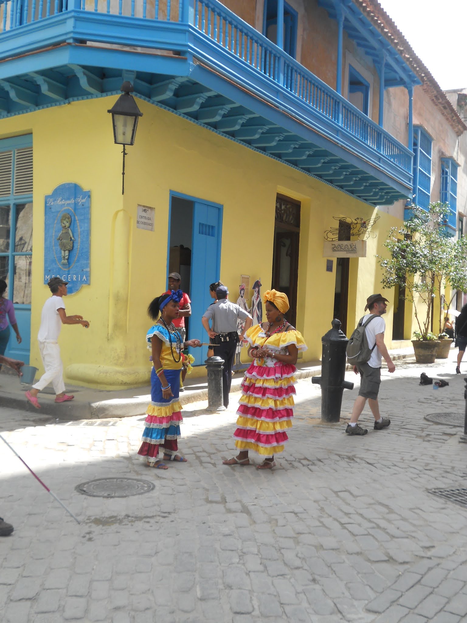 Oli kivaa seurata majapaikan parvekkeelta kadun menoa ja meininkiä. Meni autoja, musiikki soi, hedelmäkärryjä vedettiin, seurusteltiin ystävien ja naapureiden kanssa, potkittiin palloa. Ihmiset elivät kadulla, eikä sisällä. Havannassa ovat casa particularit yleisiä, eli kotimajoitukset paikallisten luona. Osa casoista on tehty ihan majoitustoimintaa varten, mutta osa taas on edelleen toisten kodeissa. Me yövyimme casa particularissa ja ei ollut kovin kallis, n. 30 € / yö. Suosittelen! Meidän majapaikassa oli olohuoneen kirjahyllyn perusteella yöpynyt paljon suomalaisia, sillä kirjahyllyssä oli useita suomenkielisiä kirjoja ja puunuket suomiasussa.