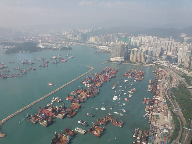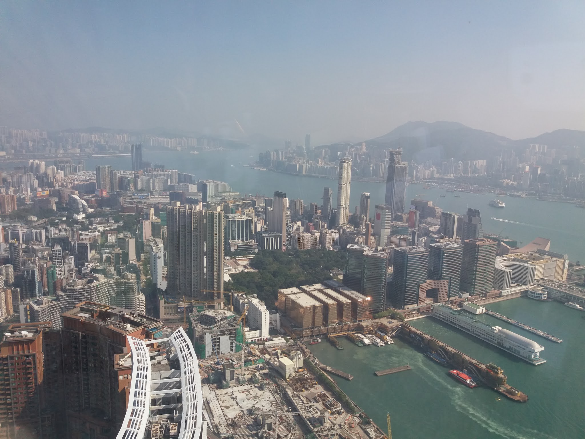 The ONE on korkea ostoskeskus Kowloonissa ja tämän yläkerrassa Sky Diningin ravintoloissa on hienot näkymät kaupungin ylle. Menimme veljen kaveria tapaamaan myös toiseen korkeaan rakennukseen, International commerce centerin työpaikkaruokalaan ihastelemaan samalla maisemia 87 kerroksesta. Samassa rakennuksessa on Sky 100 näköalatasanne, josta saa ihastella maisemia hieman korkeammalta, sillä tämä ICC on Hongkongin korkein rakennus (484 m).