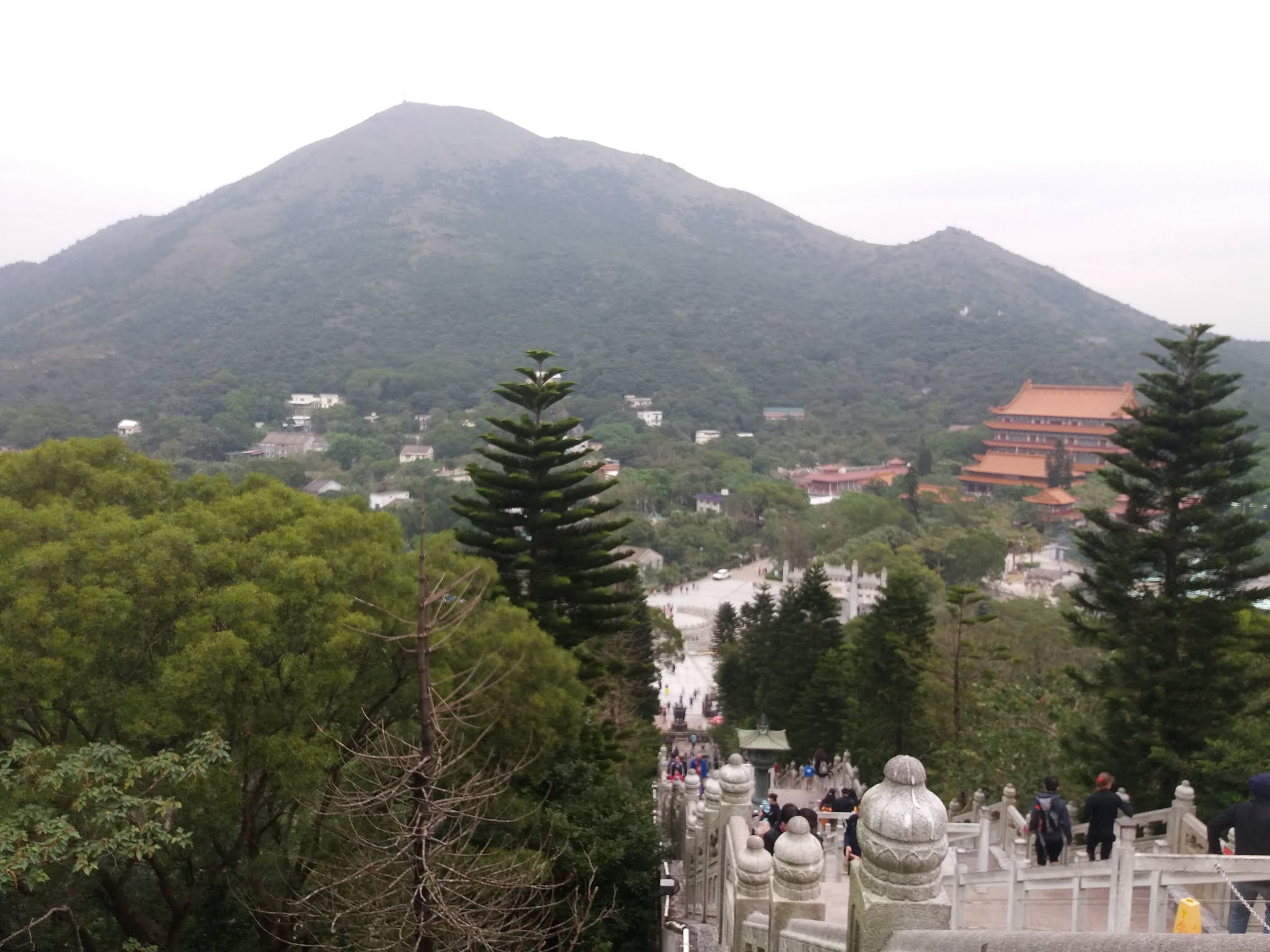 Kun saavuimme perille oli ylhäällä ravintoloita, kauppoja, tee paikkoja, temppeleitä, luostareita ja Tian Tan Buddha. Iso Buddha patsas näkyy kauas, sillä Buddhan juurelle päästäkseen on vielä käveltävä 268 rappusta, maailman suurin istuva Buddha on 34 metriä korkea. Buddhan näköalatasanteelta näkee kauas, vehreiden vuoristomaisemien yli ja saaren korkein Lantaun huippu (934 m) on ihan suoraan edessä, alueelta lähtee lukuisia patikkareittejä. Buddha on hienolla paikalla ja tosi vaikuttava eikä sisäänpääsymaksua ole. Koko alue on mielestäni kivaa lukuisine Kiinalaisine pylväineen ja temppeleineen. Samalla saarella sijaitsee bussimatkan päässä myös Tai-O kalastajakylä, minkä kannattaa yhdistää samaan visiittiin. Koska olin aivan poikki, kiersimme vain muutamat temppelit Buddhan alueella ja suuntasimme bussilla kaupunkiin ja hotelliin nukkumaan, olihan kello suomen aikaa jotain klo 3 yöllä.