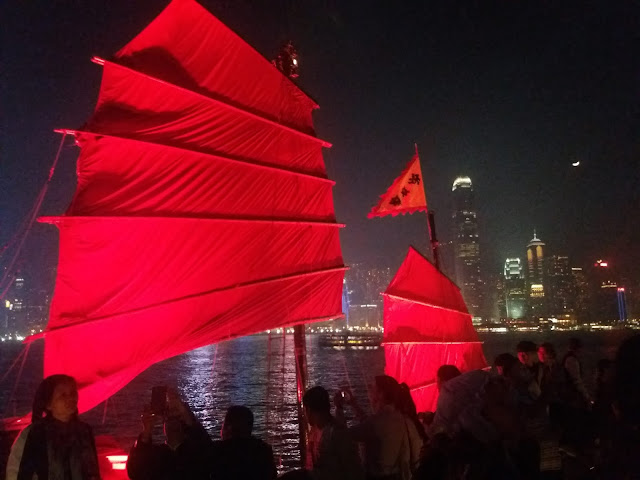 Hongkong koostuu saaresta ja mantereen puoleisesta alueesta Kowloonista. Kowloonin Tsim Sha Tsuissa sijaitsee historiallinen vanhan juna-aseman kellotorni, jonka ympäristö on kivaa aluetta viettää aikaa esimerkiksi auringonlaskun aikaan. Täällä niemenkärjen rantakadulla on tilaa ihastella vastapäistä Hongkongin saarta, sen pilvenpiirtäjiä ja punapurjeisiä puuveneitä. Tätä väliä pääsee metron lisäksi paikallisella lossilla, eikä merimatka kestä kuin alle 10 min. Viereisen kulttuurikeskuksen seinälle tuli ainakin tuolloin pimeän tultua 3D pulseshow ja illalla vastarannalla lasershow. Rantapromenadilla on myös Avenue of Stars, eli elokuvatähtien oma katu. Kowloonin puolelta etsimme räätälin, joka teetti veljelleni 3 pukua, joista yhdestä tuli pukunsa hänen häihinsä.