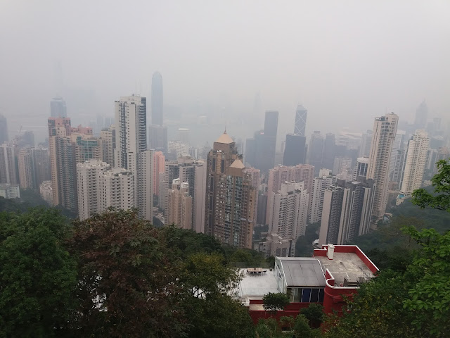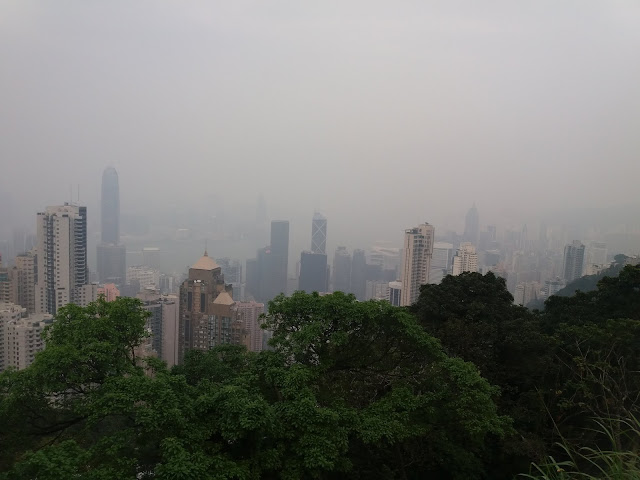 Hongkongin ehkä tunnetuin nähtävyys on Victoria peak, minne pääsee helpoiten funikulaarilla. Victorian vuori on 554 m korkea ja sieltä on näkymät merelle ja kaupungin ylle. Usein saattaa olla niin sumuista, ettei maisemia juuri näy ja meidän aikana oli hento sumu/pilvipeite maisemia peittämässä. Vuoren huipulta lähtee eri patikkapolkuja, me kävimme kahvilla läheisessä ostoskeskuksessa ja tottakai näköalatasanteella. Varaudu jonottamaan funikulaarille molempiin suuntiin.