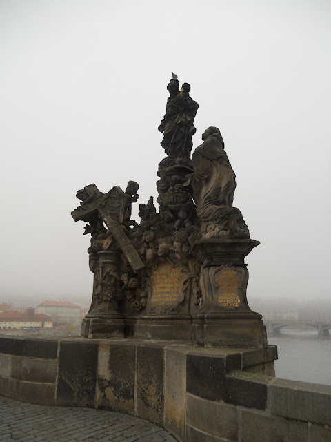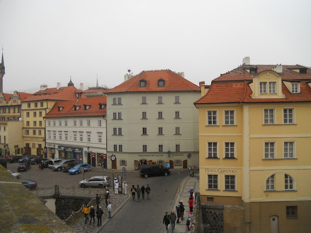 Oli niin sumuinen päivä, ettei Prahan linnaa näkynyt laisinkaan! Ihan kuin koko linna olisi puuttunut koko kaupungista. Jos olisin nähnyt Prahan linnan, olisin kenties jopa käynyt siellä, kun aikaa oli runsaasti. Nyt en hoksannut koko linnaa, vaan kävin vain kiertelemässä sillan toisella puolella, Mala Stranassa. Kaupunginosa näytti hyvin nätiltä ja se oli myös paljon rauhallisempi kuin vanhankaupungin puoli.