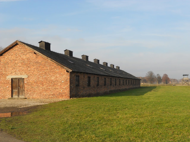 Ostimme liput ennakkoon Krakovan keskustasta Auschwitz & Birkenauhun, lippuun sisältyi myös bussimatka. Bussi lähti klo 9.00 ja perillä olimme Auschwitzissä klo 10.30, sää oli puolipilvinen. Perillä saimme luurit päähän ja englanninkielinen opas selosti kaiken. Luurit olivat melkein välttämätttömät, koska ryhmä oli niin iso, ettei pahemmin olisi kuullut mitään ilman niitä. Tietoa tuli paljon!
