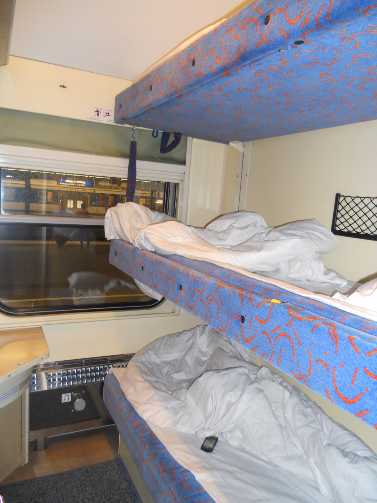 Krakovaan takaisin tultuamme, kävin pakkaamassa tavarani ja ostamassa paikkalipun Wieniin vievään yöjunaan. Oli aika hyvästellä matkaseura ja jatkaa matkaa yksin! Aika Puolassa oli sujunut tosi hyvin ja nopeasti, toivottavasti tämä loppuaikakin menisi! Makuupaikka maksoi 26 euroa, oli hienoin vaunu tähän asti! Vessakin oli siisti ja puhdas.