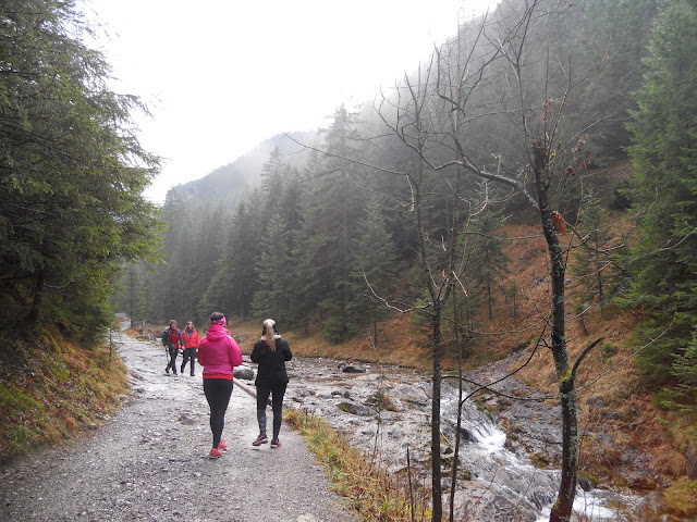 Tatran kansallispuisto oli kuitenkin todella kaunis, eikä sitä kauneutta saanut millään täysin mukaan huonoon kameraan. Sää oli raikas, n. + 6 astetta, kuuma tuli patikoitaessa. Metsä oli tosi kaunis ja ympärillä oli mahtavat vuoret. Kävelimme loivaa ylämäkeä vaihtelevassa maastossa, välillä oli tasaista ja välillä juurakkoa ja kivistä. Ehkä matkan puolivälissä oli taukopaikka tosi kauniilla paikalla.