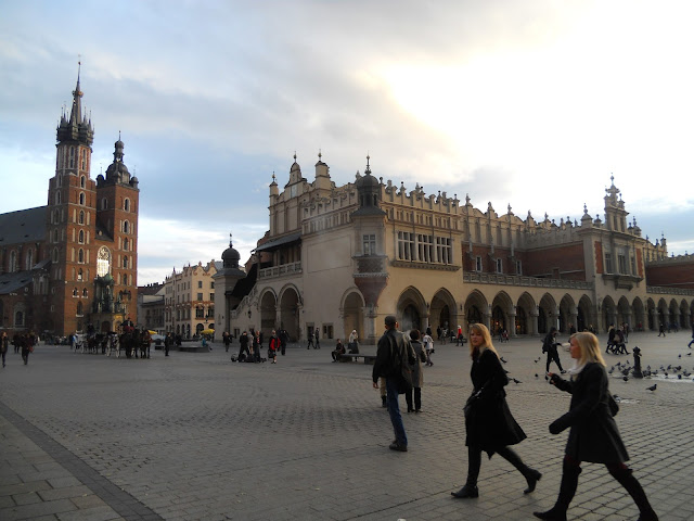 Krakovan juna-asemalla (Krakow Glownyssa) olin perillä varhain maanantaiaamuna. Kävelin taas ihan väärään suuntaan kun olin matkalla ystäväpariskunnan asunnolle, kävelin asunnon sijaan suoraan vanhankaupungin keskusaukiolle. Se oli iloinen yllätys, kun eksyin sinne ja siitä oli kuitenkin helppo suunnistaa oikeaan suuntaan. Aurinko paistoi ja hartiat sai nyt levätä useamman päivän, ihanaa! Ystäväni olivat siis Krakovassa vaihto-oppilaina ja sain asua heidän luonaan toisen ystäväni kanssa, joka oli tullut myös tapaamaan heitä.