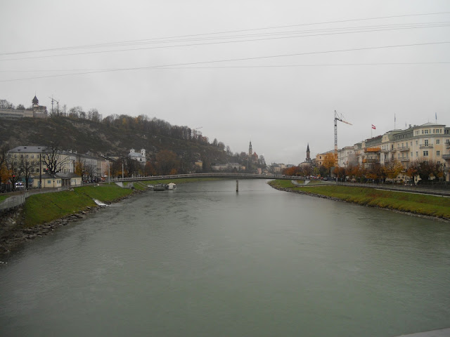 Lähdin kävelemään juna-asemalle päin, joka sijaitsi noin parin kilometrin päässä keskustasta, mutta otin bussin (2,40 eur.), koska oli kiire ja satoi. Alkuperäisten suunnitelmien mukaan oli tarkoitus käydä Salzburgista käsin kotkanpesällä, mutta se olikin tähän vuodenaikaan kiinni, joten se myös lyhensi Salzburgin visiittiäni. Suolakaivoksiakin olisi ollut lähellä, mutta ne ei tällä kertaa kiinnostanut 🙂 Vielä ennen kaupungista lähtöä, kävin kiertämässä joulumarkkinat vielä kerran päiväsaikaan. Oi että, jälleen kerran!