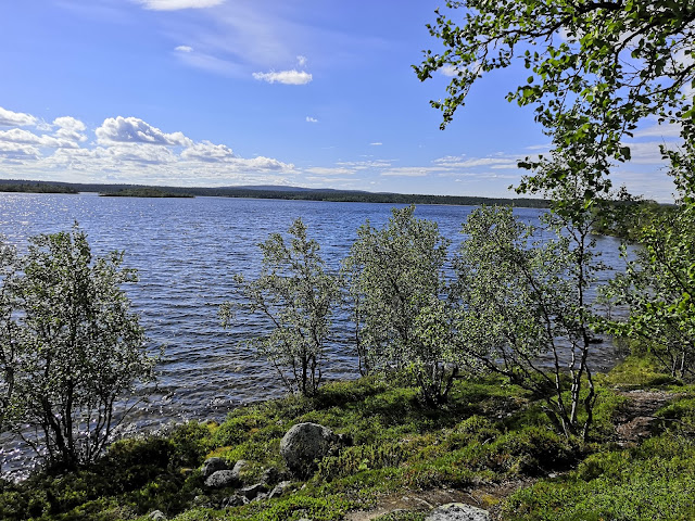 Saariselän jälkeen maisemat sen kun parani ja koko ajan tuli yhä enemmän Lappilainen fiilis. Heti kun saavuttiin Inariin, tunnistettiin maisemat ja järvet tyypilliseksi Inari maisemaksi: kivikkoista, erämaisia saaria ja vastarantoja, ei voinut erehtyä missä oltiin. Juuri tätä maisemaa olin vuosia odottanut pääseväni näkemään! Tänne jäämme paremmalla ajalla paluumatkalla, joten matkamme jatkui Muddusjärven ohi kohti Sevettijärveä, jonka maisema muuttui aina vain nätimmäksi ja erämaisemmaksi.