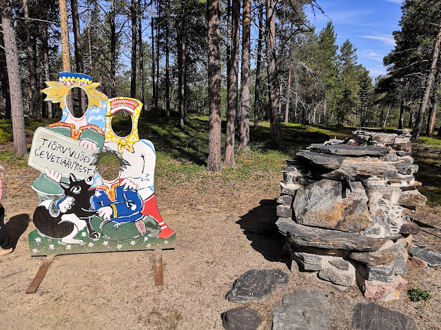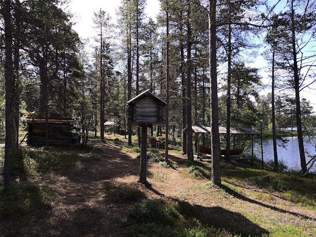 Tähän mennessä olivat päivät olleet todella lämpimiä ja koiralla oli joka yö kuuma, itsellä myös. Lämmin ja aurinkoinen sää odotti myös seuraavana aamuna, asteita oli + 24,5. Harmikseni oli Sevettijärven kolttien perinnetalo tänään suljettu, mutta pääsimme kiertämään ulkomuseota. Pihapiirissä on tanssilava, joka on kyläläisten käytössä tänäkin päivänä. Esillä oli tyypillinen ulkouuni, jolla entisaikaan leivottiin kesäisin pihalla leipää. Kolttasaamelaisten alkuperäiset juuret ovat Petsamosta, mistä suurin osa siirtyi tänne sodan aikaan. Kolttasaamelaisten vanhaan tapaan muuttaa paikasta toiseen vuodenaikojen mukaan, esittelee tämä ulkomuseo nimenomaan heidän kesäasuinpaikkaa. Suurin osa alkuperäisistä rakennuksista tuhoutui sodassa, joten ulkomuseossa esillä olevat piharakennukset ovat rekonstruktioita mm. aitoista, savusaunoista, kalakellareista, kodasta ja erilaisista suojista, mitä metsästyksessä ja kalastuksessa siihen aikaan tarvittiin.