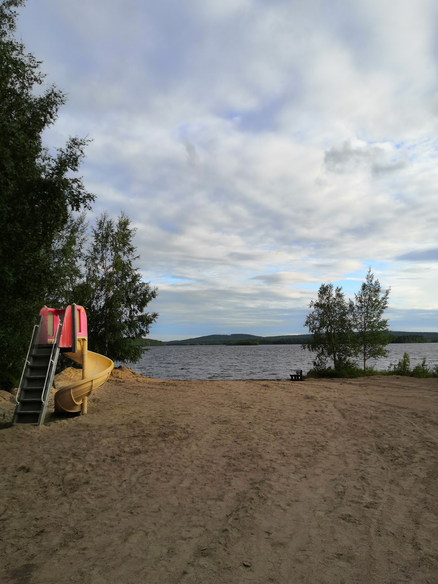 Telttapaikka oli erittäin edullinen, vain 5 euroa yö + 2 euroa / hlö. Hyttysiä oli aivan ennätysmäärä, onneksi oli thermacell ja hyttysmyrkky apuna. Lähdin tytön ja koirien kanssa kävelemään järven reunaa pitkin kohti rantasaunaa, jonka olisi saanut varata. Pystytimme leirin ja asettauduimme loppuillaksi rannalla sijaitsevalle laavulle, tuli piti hyvin hyttysiä poissa.
