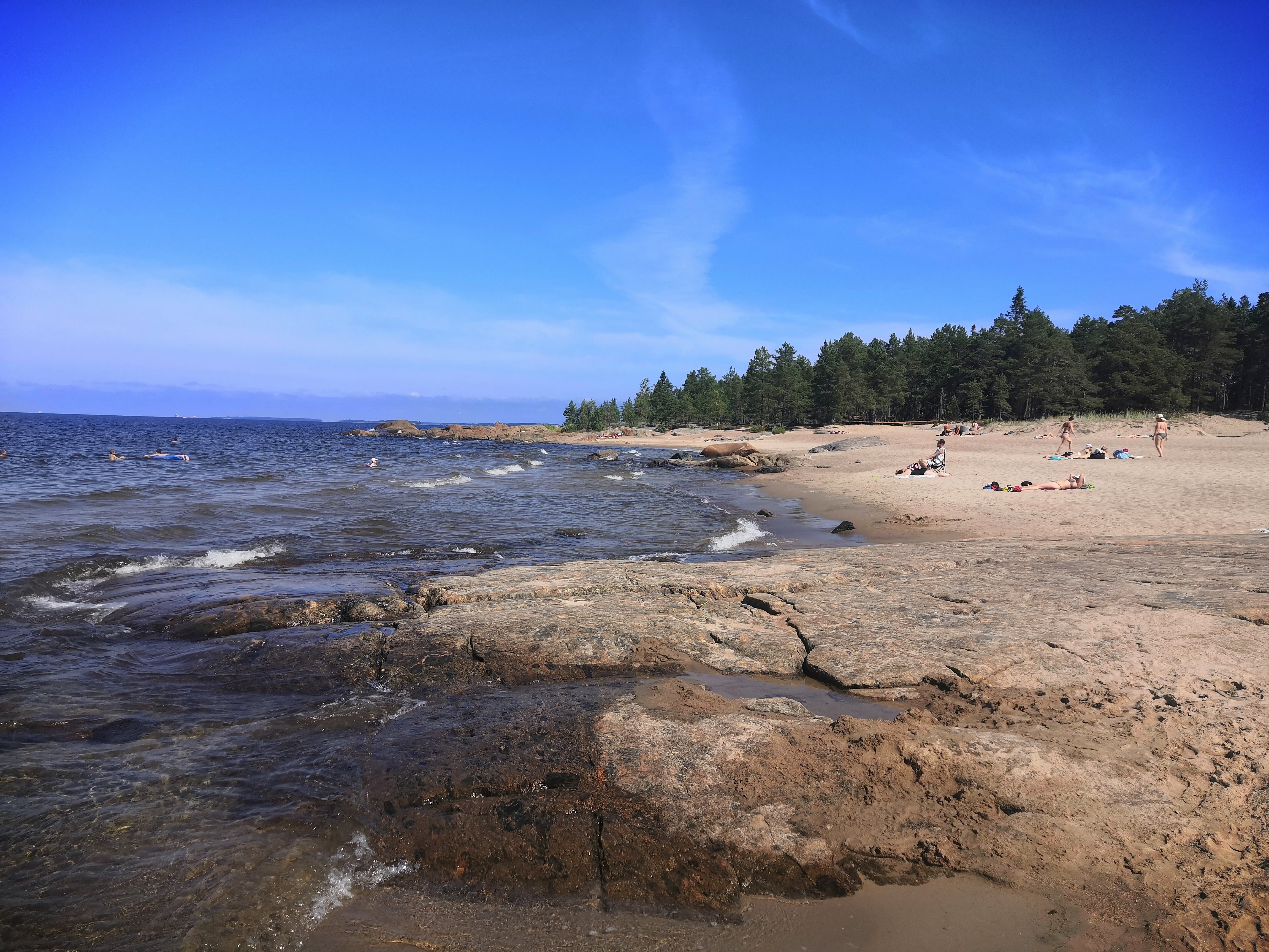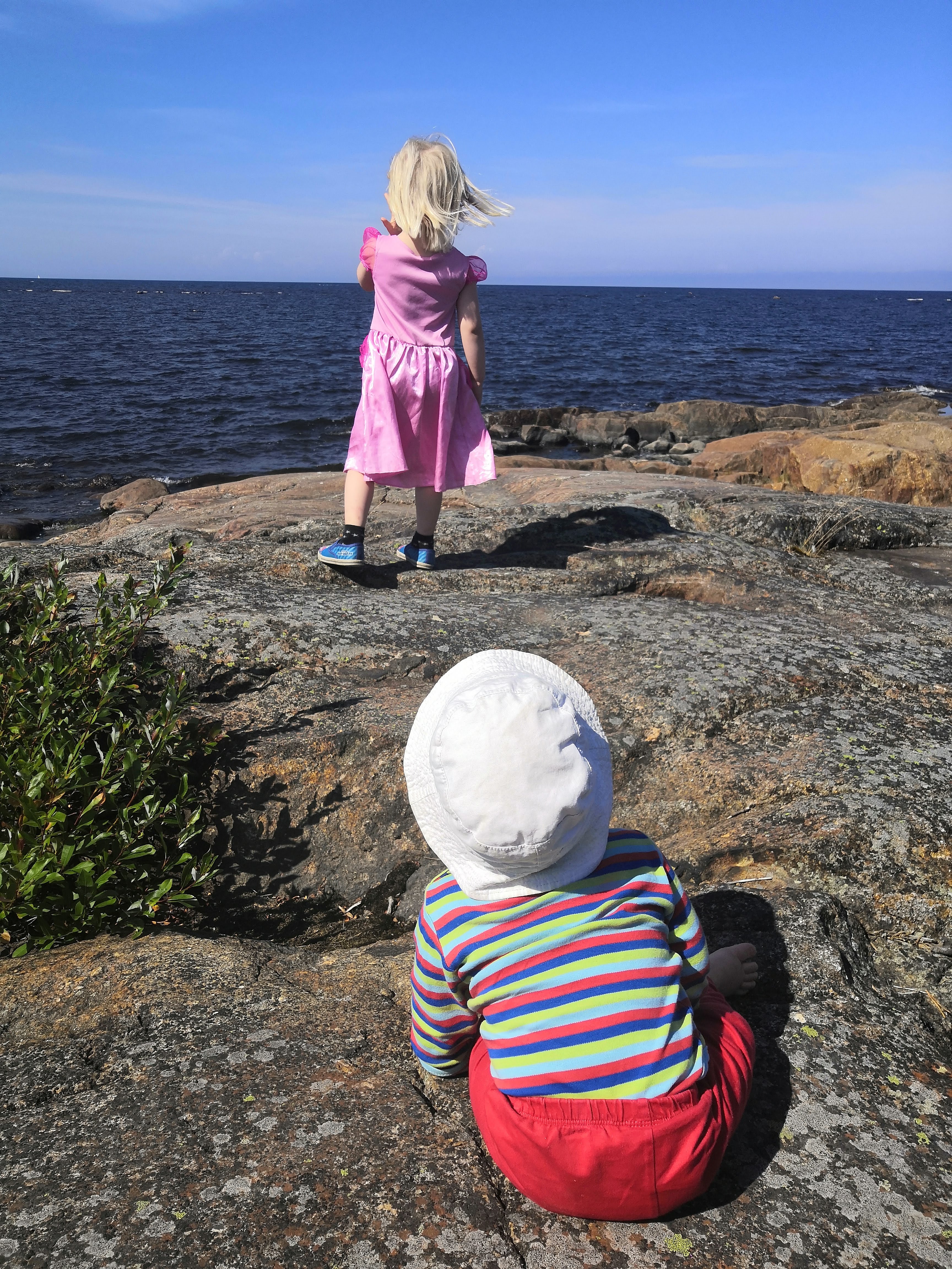 Ranta on sopivan matala, juuri sopiva pienille lapsille. Rannalla tuulee sen verran, että helteinen päivä ei tunnu niin kuumalta. Jäisin mielelläni tänne loppupäiväksi, mutta on vauvan päikkäriaika, joten uimisen jälkeen lähdemme kotiin päin.