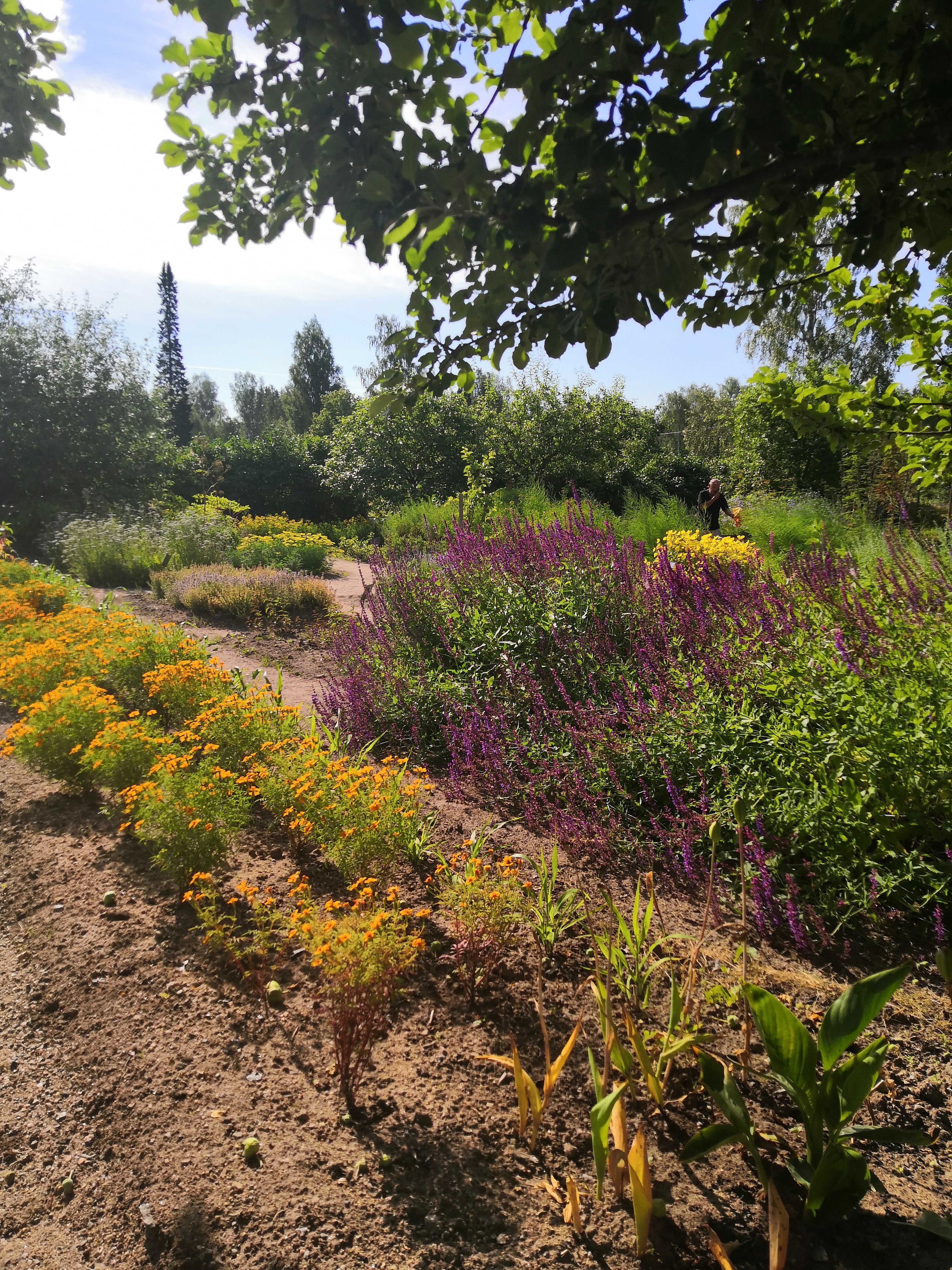 Kävelemme hissukseen ja vain katselemme. En edes tiedä mitä nämä kaikki kasvit ja kukat ovat, mutten ajattele sitä, ihailen vain. Puutarhan keskellä on soma vanha huvimaja, täällä tuoksuu niin hyvälle!