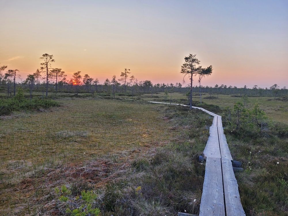 Lähdin takaisin pitkospuille ihastelemaan kaunista kesäyötä. Mieleni valtasi ihana rauha, kun ympärillä oli suota, pitkospuita ja lämmin kesäilta, niin kaunista, tajuttoman kaunista.