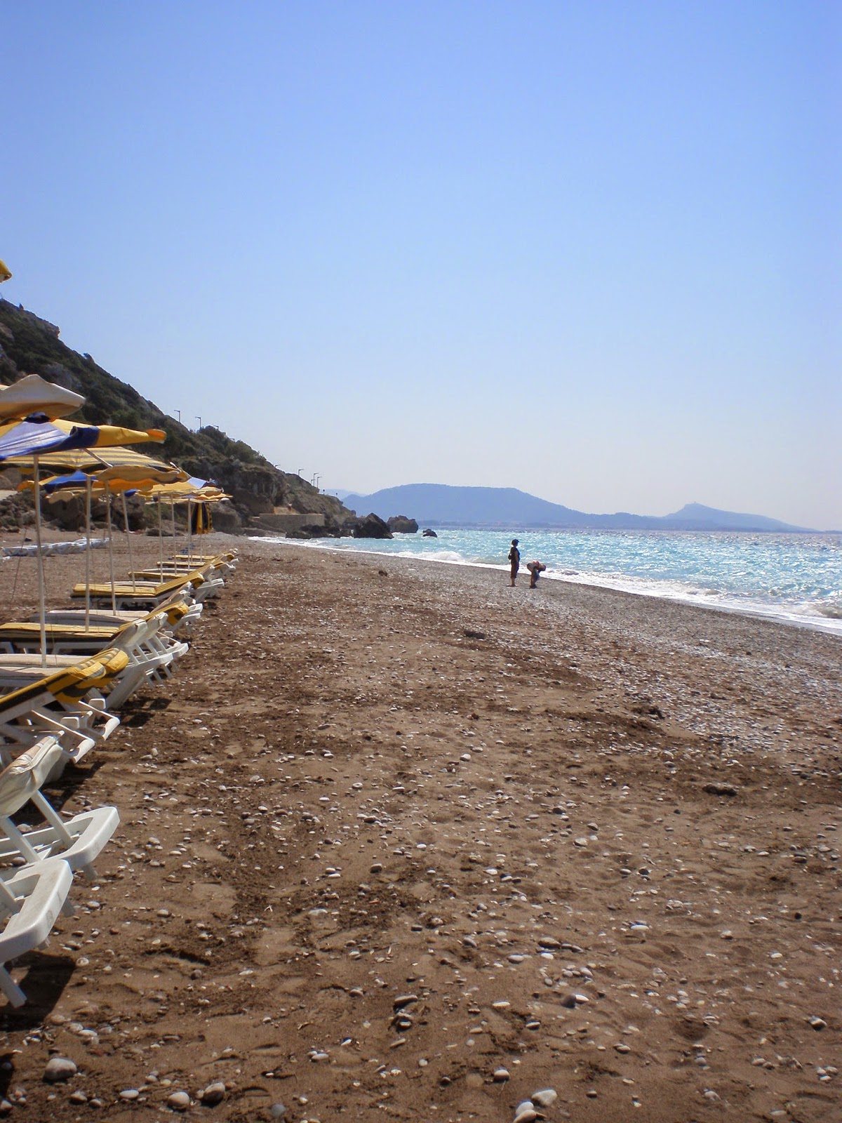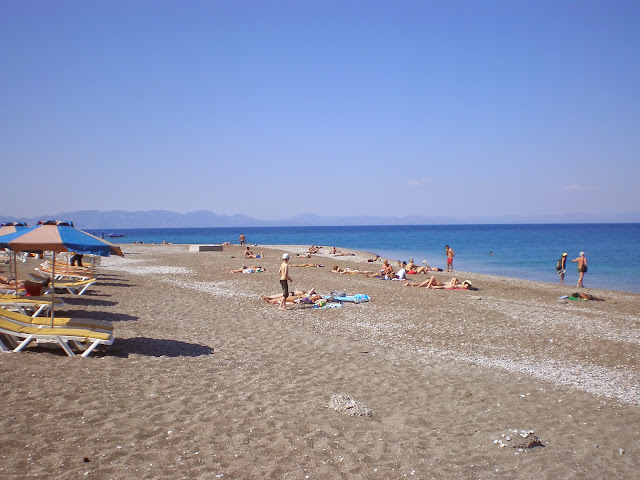 Rodoksen kaupungissa oli Ellin ranta, hiekka oli hienohiekkaista ja aurinkotuolit maksoi 4 €. Kävin saaren kärjessä pällistelemässä. Rodoksen kaupungissa oli myös toinen ranta, tuulinen ranta nimeltään, siellä oli vähän kivisempää se ranta ja tuuli hieman enemmän kuin Ellin rannalla.