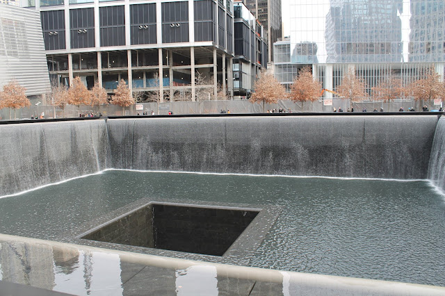 World Traid Centerin muistopaikkaan ei ollut mitään sisäänpääsymaksua, mutta piti lahjoittaa rahaa. Olin jopa yllättynyt, ettei sisäänpääsymaksua ollut joten ihan mielellään lahjoitimme. Sinne oli tosi pitkä jono ja kauheat turvatarkastukset, ihan kuin olisi lentokentällä ollut. Itse paikalla odotti 2 suurta aukkoa, joissa oli vesiputoukset ja reunoja ympäröi WTC:ssä kuolleiden nimiä. Kun siinä luki niitä nimiä yksitellen perä jälkeen, hahmottui kuinka paljon ihmisiä silloin menehtyikään. Siinä näki omin silmin, kuinka isosta rakennuksesta oli kyse ja oli aika kummallista olla siellä, kun oli nimenomaan tvstä nähnyt juuri niiden talojen sortuvan. Hienoa, että ovat tehneet siitä muistopaikan. WTC:n yhteydessä oli jokin museokin.