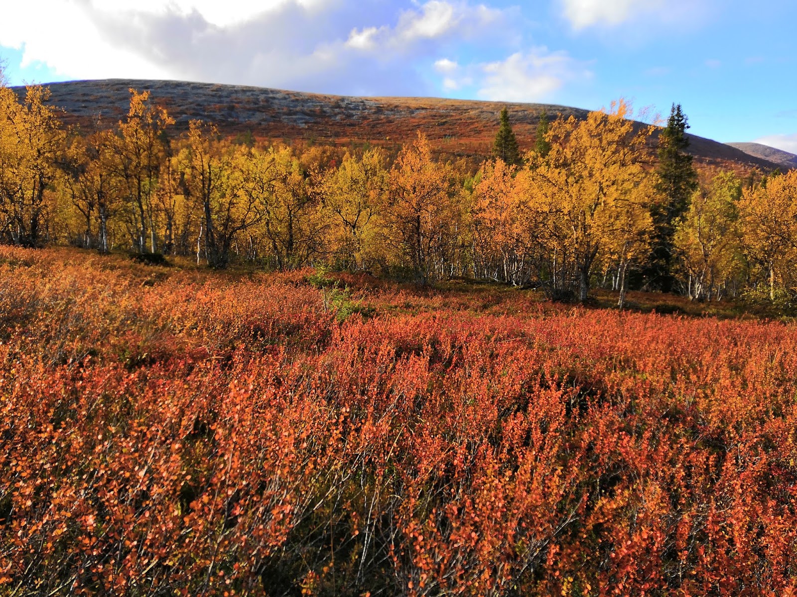 Syyskuussa oli miehelläkin vihdoin lomaa ja lähdimme koko perhe yhdessä ruska-aikaan Lappiin, Pallakselle. Olimme Lapissa viikon ja ruska oli tuolloin parhaimmillaan. Vaelsimme yhtä päivää lukuunottamatta joka päivä ja taapero viihtyi kantorinkassa todella hyvin. Pallaksessa oli parasta se, että sieltä puuttui suuret palvelut ja ”turistikeskukset”, vain luonto ja tunturit oli ympärillä. Tuntui että tämä oli juuri oikea paikka meille.