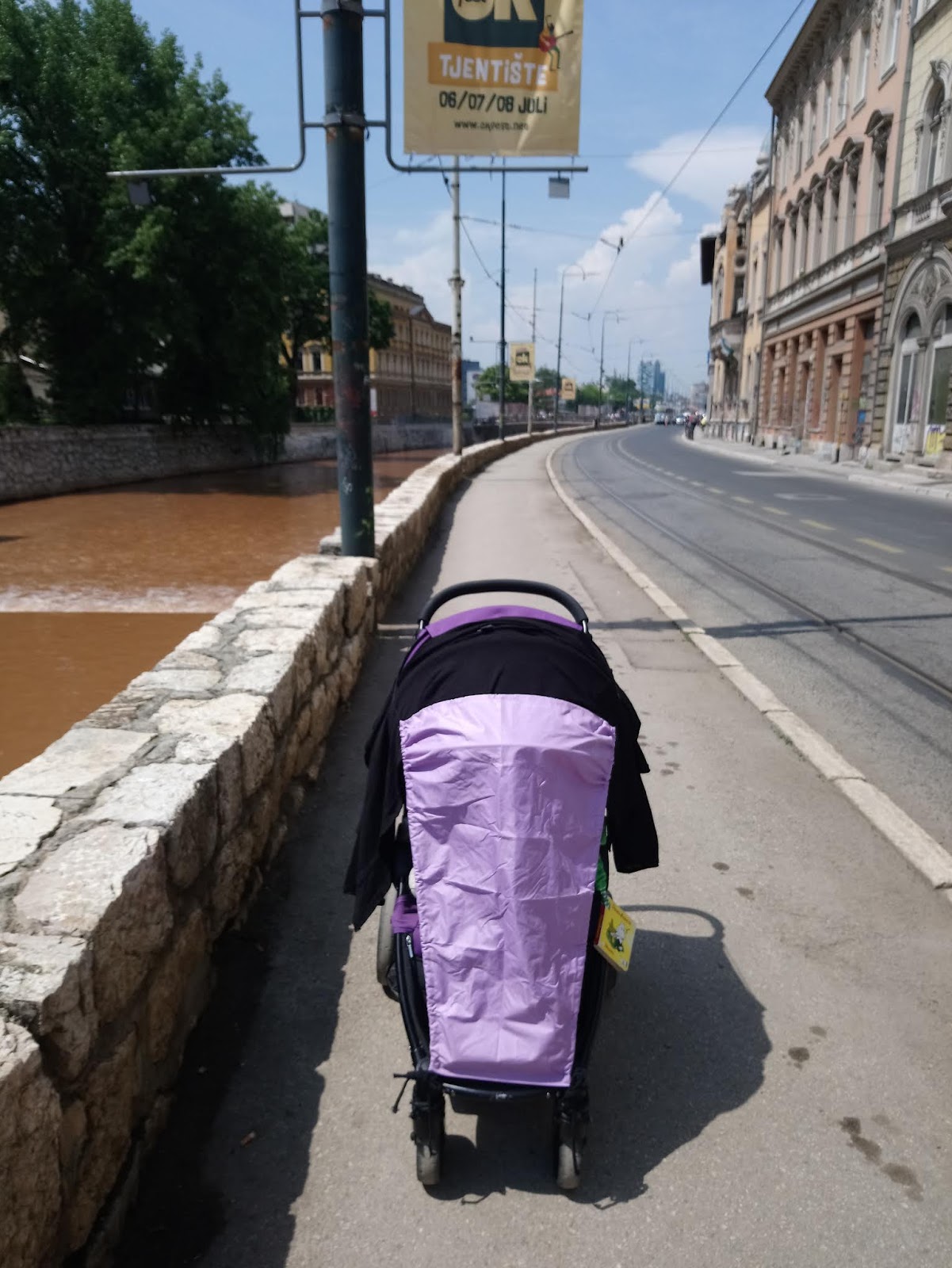 Renkaatkin ovat olleet muuten hyvät, mutta ne ottivat hieman itseensä jo ensimmäisen matkan jälkeen kun kuljettiin paljon mukulakivillä. Matkarattaiden sadesuoja on ollut tarpeellinen, samoin uv-suoja. Vauva matkusti matkarattaissa ensimmäistä kertaa 4,5 kk iässä, olihan hän vähän liian pieni sinne vielä, mutta hyvin hän siellä pysyi.