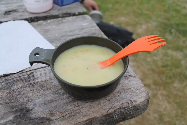Aiempina vuosina on mukana ollut tiskiharjanpää, mutta nyt se vaihtui keittiösieneksi. Tiskaushanskat ovat olleet hyödyllisiä silloin kun ollaan tiskattu jääkylmässä vedessä, tiskiaine on ollut aina ecoa. Meillä on ollut mukana 4 x litran Nalgenen pulloja, ne ovat olleet helposti täytettävissä ja monipuolisia pulloja. Mies osti itselleen retkeilykäyttöön tarkoitetun kahvimyllyn, joten pannukahvin olemme korvanneet kahvipavuilla.