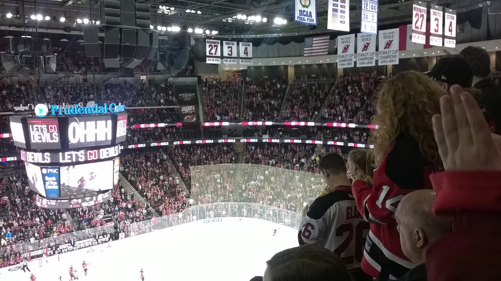 Iltapäivällä ennen klo 17 otettiin juna Pennstationilta New Jerseyihin, junalippu maksoi 10 dollaria yhdeltä edestakaisin. Pelin oli tarkoitus alkaa klo 19.00, junamatka kesti 17 minuuttia. Prudential Centerin jäähalli oli aivan juna-aseman vieressä, kadun toisella puolen. Sinne suuntasi junalta niin paljon ihmisiä, ettei paikasta voinut erehtyä.
