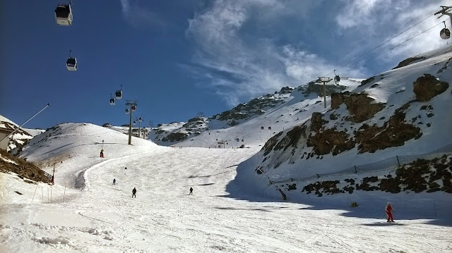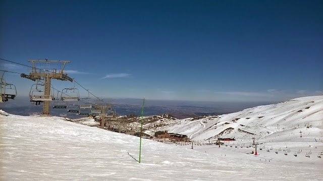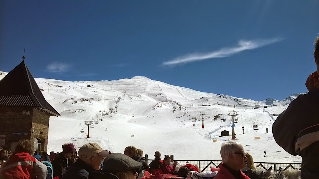 Hissit aukesivat täällä 10.00 ja viimeinen nousu ylös 17.00, olimme aivan död joten lopetimme laskettelun n. puoli viisi. Offari laskijoille, Sierra Nevada ei ole oikea paikka. Täällä on eteläisen ja lämpimän sään vuoksi erityisen iso lumivyöryvaara!