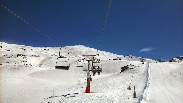 Tämän jälkeen siirryimme hissillä kohti Veletan huippua. Menimme sinne yhdellä tuolihissillä ja yhdellä ja ainoalla ankkurihissillä kohti 3300 metrin korkeutta.