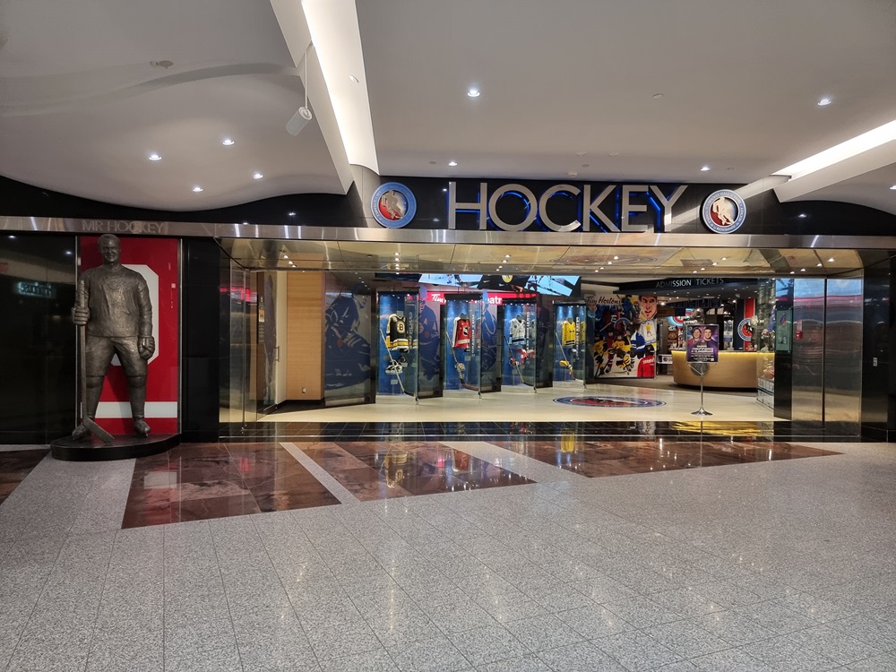 Kävimme katsomassa NHL Maple Leafsin Scotia Bank areenan ja jääkiekkojoukkueen Maple Leaf aukion. Aukiolla on maassa hopeisia vaahteralehtiä ja jääkiekkopelaaja patsaita.