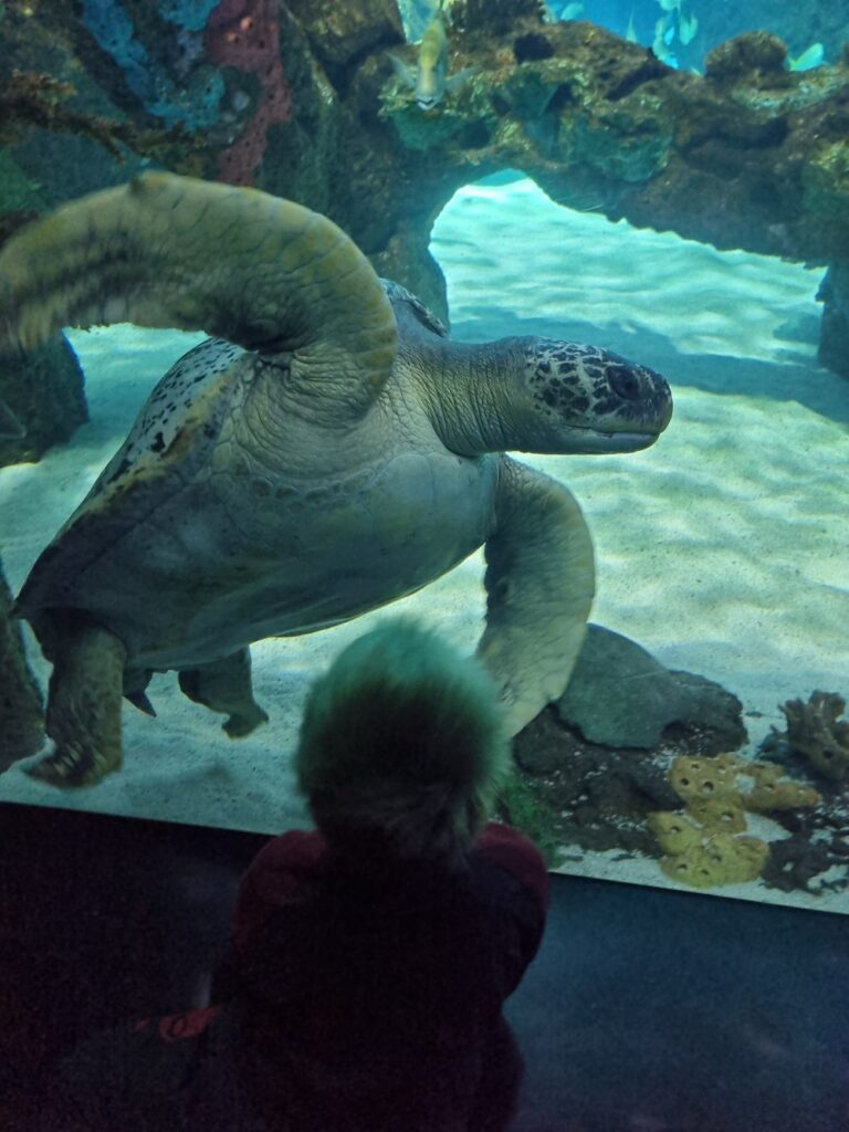 Meren ekosysteemistä oli myös oma osionsa, tietoa meren eri kerroksista sekä tsunami simulaattori. Mieleenpainuvin oli veden alla kulkeva tunneli, jonka ympärillä kilpikonnat ja erilaiset hait uiskentelivat. Oli jännä tunne, kun hai ui suoraan pään yläpuolelta ja kilpikonnan näki aivan lasin takaa.