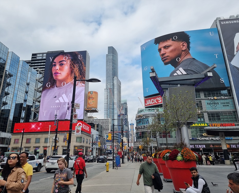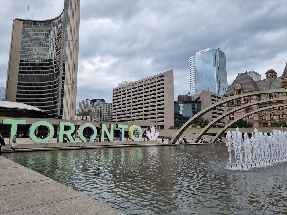 Toronto kyltti, joka vaihtaa jatkuvasti väriä sijaitsee aivan Toronton keskustassa suurella aukiolla. Aukion ympäri voi kävellä kävelysiltaa pitkin ja Toronto kyltin edustalla on vesiallas, joka muuttuu talvella luisteluradaksi.
