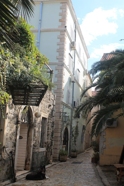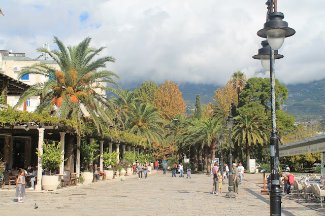 Lähdimme varhain aamulla Dubrovnikista kohti Montenegroa, missä rajan ylitettyämme menimme vielä autolautalla Kotorinlahden yli, oli usvaista ja vuonot näyttivät hienoilta. Klo 10.00 olimme jo Budvassa ja kävelimme rantabulevardia pitkin kohti vanhaakaupunkia. Puoliso kiinnitti huomiota siihen, että täällä oli ihan erilainen tunnelma kuin Dubrovnikissa, tunnelma oli paljon rauhallisempi. Budva on Venäläisten turistien suosiossa, mutta koska oli jo lokakuu, oli suuret massat jo vähentyneet ja saimme tutustua Budvaa kaikessa rauhassa.