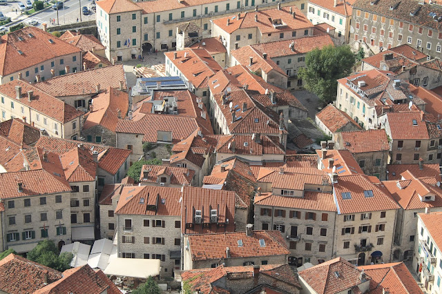 Aika ehdoton paikka ihastella Kotoria, niin hienot maisemat yli kaupungin. Jäätiin tasaanteelle, minkä yhteydessä oli pieni kirkko. Kun jatkoimme takaisin alaspäin, tuli rappusissa vastaan mies Los Angelesista harmaassa puvussa, kantaen salkkua kädessä, näky huvitti vähän. Alas päästyämme kävin ostamassa jäätelöä tietenkin, pallo maksoi vain euron, se kertoo Dubrovnikia edullisemmasta hintatasosta. Jäätelöpallon hinta kertoo aina paljon 😀