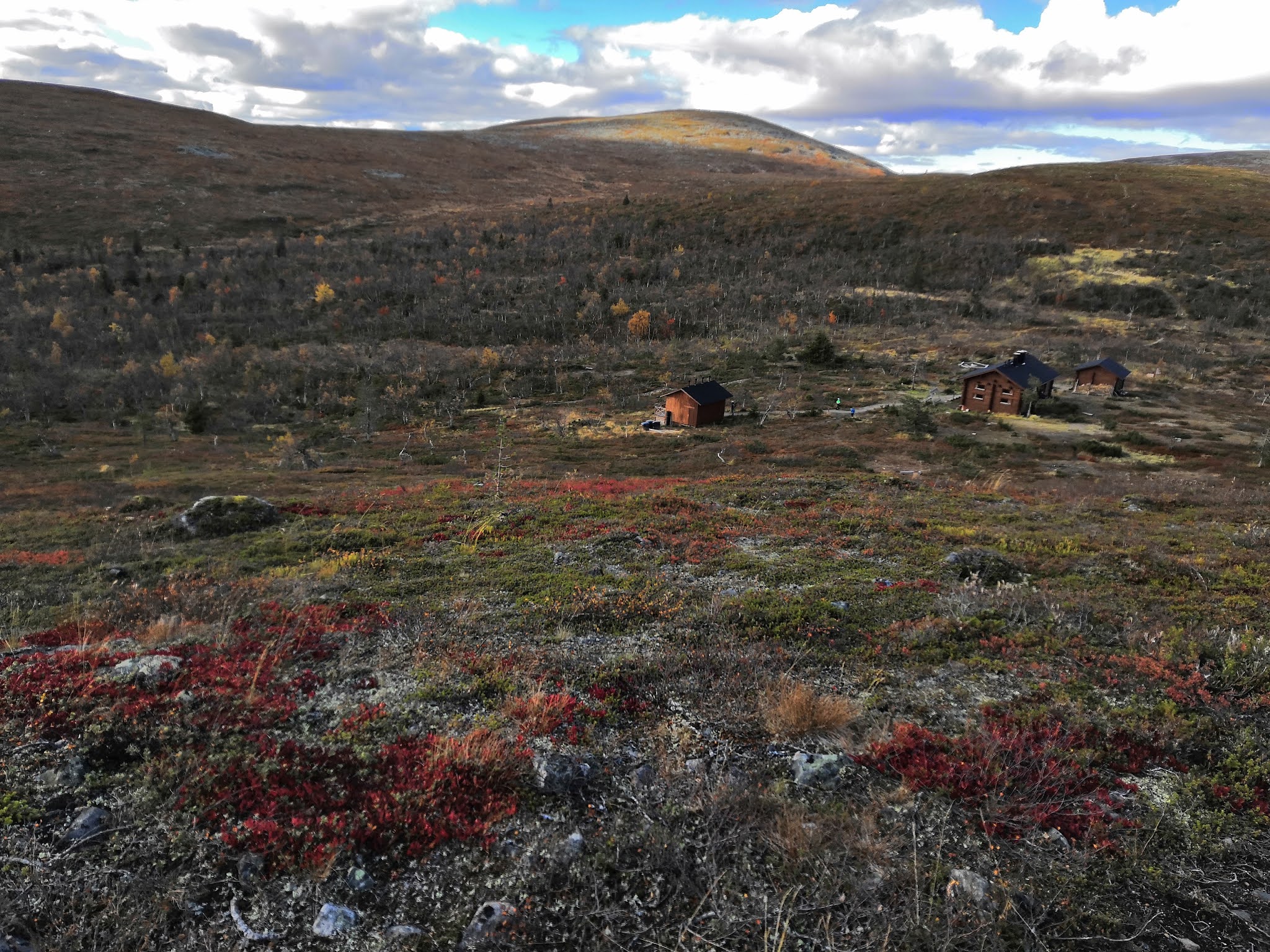 Päivä valkeni pilvettömänä ja aurinkoisena, kun lähdimme Pallaksen loman ensimmäiselle päivävaellukselle. Jätimme auton Vuontispirtin parkkipaikalle, mihin oli mökiltä vain 3 km. Montellinmajalle oli täältä matkaa 6 km suuntansa. Alkumatka käveltiin ”tienpohjaa”, jonka jälkeen tuli pieni suo. Oli tosi komeat maisemat kun aurinko paistoi ja tunturit oli aivan ruskassa, ruskean punaisia ja puut keltaisen oransseja. Muutaman kilometrin patikoimme metsän läpi, polut oli mönkijäuran levyisiä sorateitä ja helppoja kävellä.