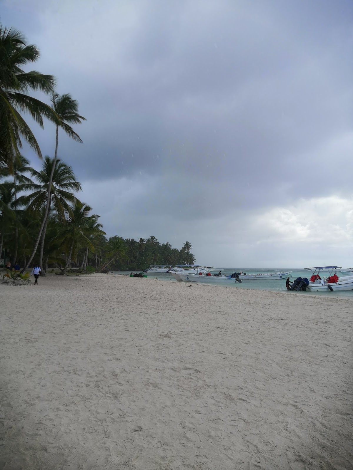 Punta Canan edustalla on Atlantti, mutta Saonan saaren edustalla aito Karibian meri. Aurinko paistoi, meri oli turkoosia ja samaan aikaan taivas oli hyvin tumma. Lähdin yksin kävelemään rantaa pitkin, sillä aikaa kun puoliso pulikoi meressä tytön kanssa. Merivirtauksia ei ollut, mutta aallot olivat kovia. Vaikka niiden kanssa yritti olla tarkkana, pääsivät ne kuitenkin yllättämään. Rannalla kävellessäni ajattelin, että nyt olen ensimmäistä kertaa elämässäni Karibian meren äärellä, se tunne oli rentouttava, samalla kun imin itseeni sitä lämpöä ja täydellistä ilmastoa.