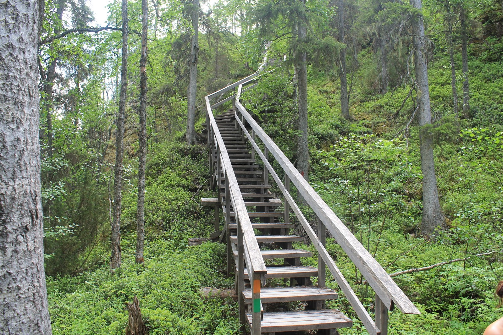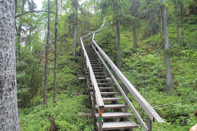 Pieni karhunkierros oli helppokulkuinen, oli kuitenkin paljon korkeuseroja ja rappusia, kallioita, koskia, jokia ja metsämaisemaa matkan varrella.
