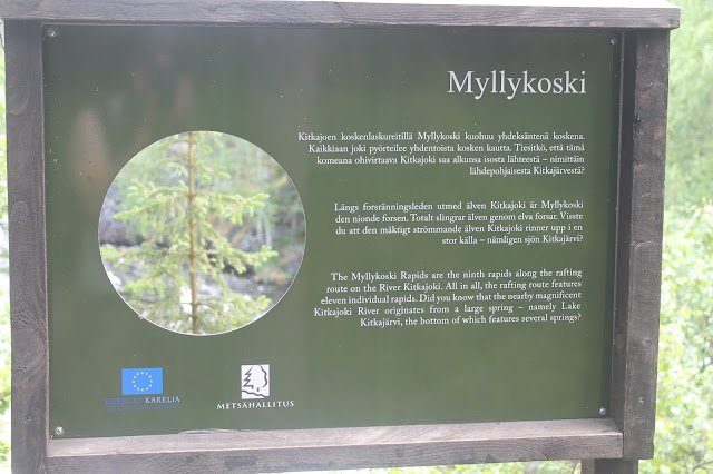 Ensimmäinen riippusilta tuli jo muutaman sadan metrin jälkeen parkkipaikalta lähtiessä. N. 1,5 km päässä parkkipaikasta tuli jo tunnettu Myllykoski vastaan. Aika vähän tuli ihmisiä vastaan, mutta taukopaikoilla oli aina porukkaa.