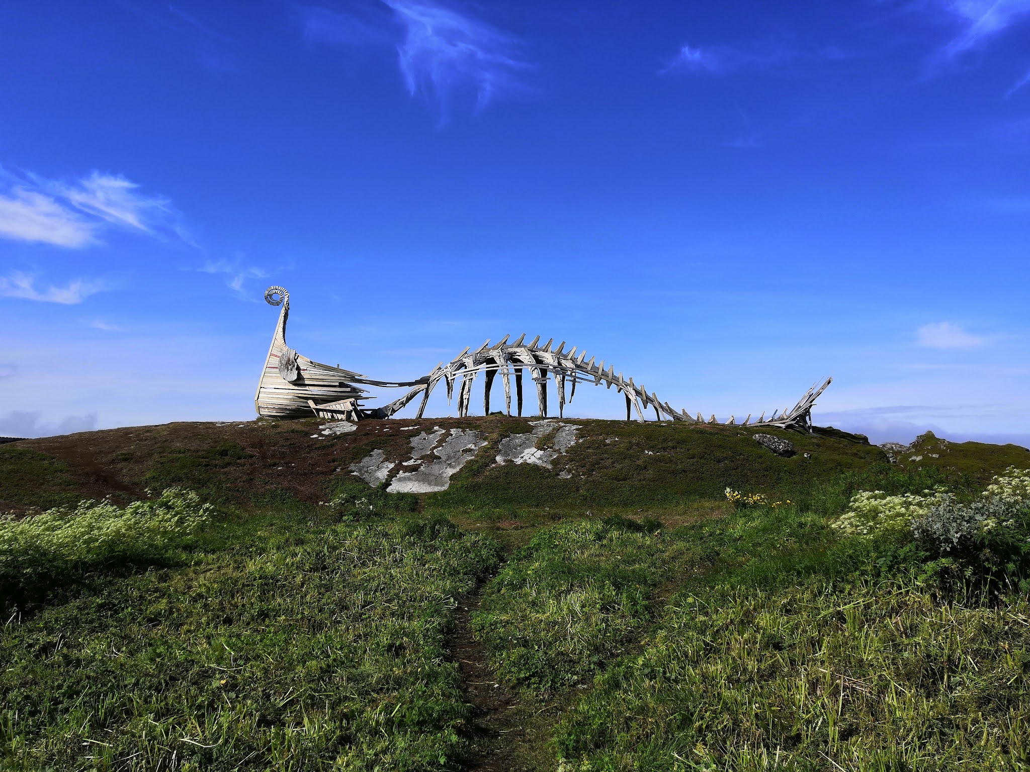 Lähdimme ajamaan saaren päätyyn, jolloin vastaan tuli Drakkar – lohikäärmeen ja viikinkiveneen ristelmä. Taideteos symboloi mm. merta, mytologiaa, historiaa, muuttoliikennettä, veneitä, puuta ja valaita. Se sijaitsi hienolla paikalla, kallion päällä meren vieressä.