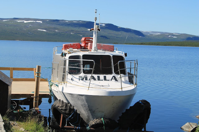 Lähdimme melkein heti Malla-veneelle joka vei meidät Kilpisjärven toiselle puolelle, sieltä patikoitiin vielä 3 km matka kolmen valtion rajapyykille. Taustalla näkyi komeita vuoria ja luntakin oli vielä tuntureiden päällä vaikka oli heinäkuu. Rajapyykin ympärillä pyörittyämme kävelimme takaisin veneen luo. Venematka maksoi 25 euroa ja koko retki kesti 3 tuntia. Retken jälkeen kävimme syömässä retkeilykeskuksessa hyvät pitsat. Harmitti enemmän kuin paljon, ettei jatkettu tällä reissulla Norjan puolelle vaikka näin lähellä oltiin. Se oli kuitenkin muun porukan yhteinen mielipide, Norjan vuoro olisi joku toinen kerta ihan oman ajan kanssa (Norjan reissu toteutuikin seuraavana vuonna).