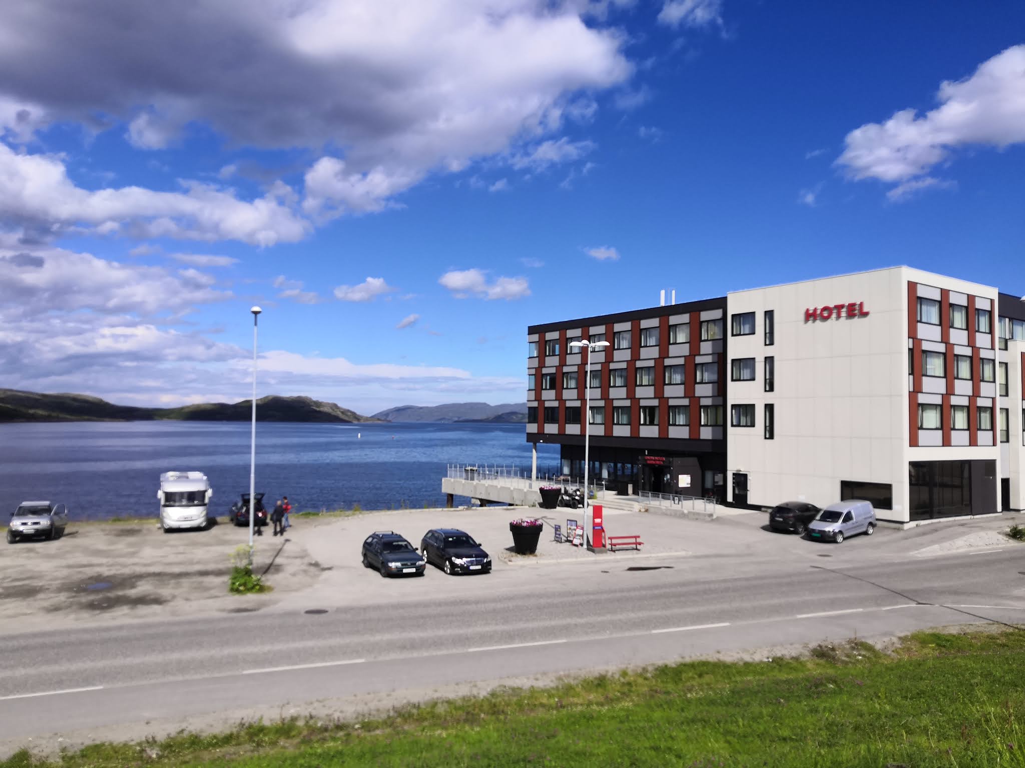 Kirkenesistä on Pykeijaan matkaa n. 1 ½ tuntia, joten tänään oli todella sopivan pituinen siirtymä edessä. Näätämö risteyksen jälkeen alkoi hieno reitti, maisemat oli avarat mutta silti oli minivuoria näkyvissä ja Vaggessa hieno vuononäkymä kohti Bugoyfjordia laskuveden aikaan.