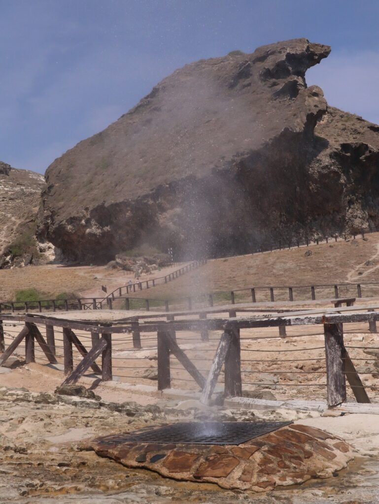 Jätimme auton ravintolan pihaan ja kävelimme muutaman sadan metrin vuoren taakse. Siellä on Mughsail Fountains / ”blowholes” (en tiedä näiden suomenkielistä sanaa), kyseessä on siis maassa oleva reikä, josta nousee ilmaa ja roiskuvaa vettä (kuva kertoo enemmän…).