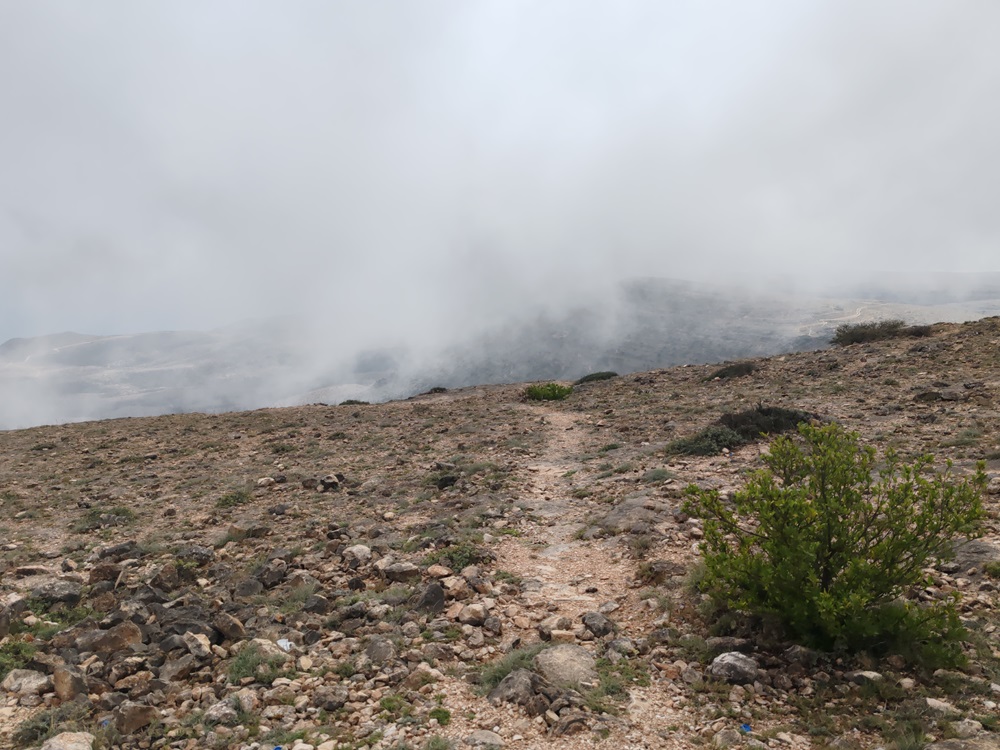 Tutkittuaan niitä hetken, hän päästää meidät jatkamaan matkaa. Epäilemme tarkistuksen liittyvän Jemenin sotaan, sillä Jemenin rajalle on täältä noin tunnin ajomatka. Saavumme muutaman sadan metrin päästä Viewpoint Cloudille, missä olemme samalla korkeudelle pilvien kanssa.