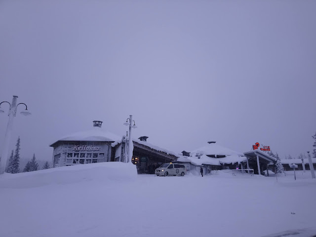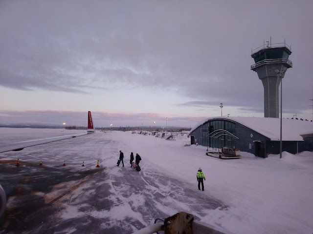 Lensin matkamessuilta suoraan Kittilään yhdessä 8 kk ikäisen vauvan kanssa. Oli tosi kiva tapa yhdistää matkamessut ja reissu heti sen perään, tuntui hemmottelulta. Lentokoneen ikkunasta näkyi paljon metsää ja lumisia tykkypuita. Laskeuduttuani oli ulkona -24 astetta, tulin koneesta ulos ilman takkia eikä tuntunut yhtään kylmältä. On tullut monet kerrat todettua, että Lapin paukkupakkaset ei tunnu yhtään kylmältä, kun vertaa meri-ilmaston samoihin pakkaslukemiin. Levin rinteet näkyi lentokentälle asti, mutta itse jatkoin matkaani äidin auton kyydissä Äkäslompoloon.