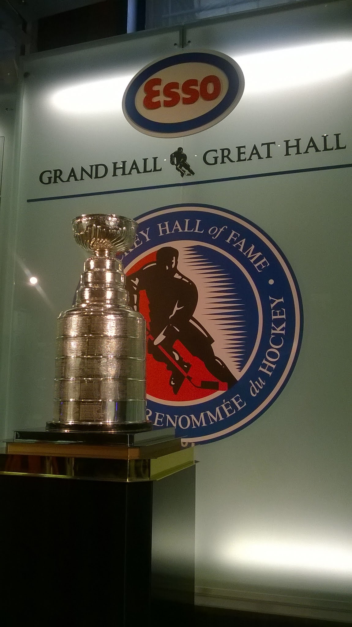 Seuraavaksi suuntasin Hockey Hall of Fameen, joka oli Toronto päiväni päänähtävyys. HHOF on kunnianosoitus niille jääkiekon pelaajille ja joukkueille, jotka ovat vaikuttaneet hyvin vahvasti jääkiekon maailmassa. Pelaaja, rakentaja tai toimitsija voi päästä HHOF vasta uran päättymisen jälkeen, tällä hetkellä Suomalaisia pelaajia on siellä kaksi, Kurri ja Selänne. Itse vierailin täällä ennen Selänteen valintaa. HHOF:ssa esitellään laajalti myös jääkiekon historiaa. The Grand hall sijaitsee vanhassa rakennuksessa, joka on aiemmin toiminut pankkina ja se rakennettu vuonna 1885. HHOF oli olevinaan tosi iso paikka. Paljon pelipaitoja (myös leijonapaita), automaatio juttuja – sai itse katsoa ja kokeilla esim. laukaisu nopeutta, istua studiossa, oli erilaisia jääkiekkovarusteita ja esineitä, 3D yms. Yritin bongailla mainintoja suomalaisista kiekkotähdistä, oli Selännettä, Koivua, Helmistä, Kurria, Jutilaa. Siellä oli kyllä paljon ihmeteltävää, jääkiekon ystäville todella mielenkiintoinen paikka!