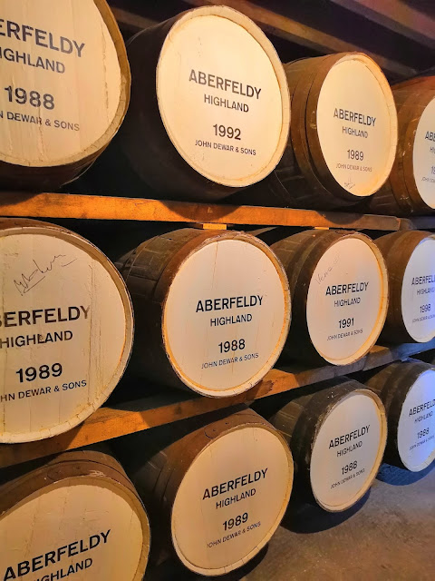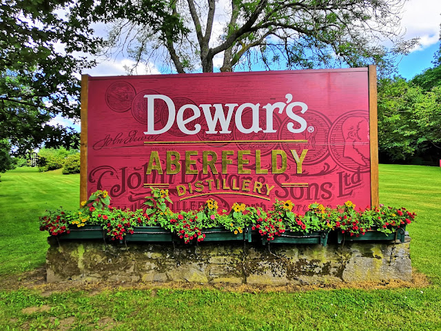 Kirjauduimme hotelliin ja lähdimme samantien n. 10 minuutin kävelymatkan päässä sijaitsevaan Dewar’s Aberfeldy viskitislaamoon. Valitsimme esittelykierroksen jonka 10,5 punnan hintaan sisältyi yksi valinnainen maistiainen neljästä eri viski vaihtoehdosta. Saimme oppaaksemme Suomessa 27 vuotta asuneen Jeremyn, joka olisi varmasti vetänyt kierroksen myös Suomeksi ellei ryhmässä olisi ollut muun kielisiä mukana. Juttelin hänen kanssaan kierroksen jälkeen ja minua kiinnosti mitä hän oli Suomessa ollessaan tehnyt ja koska palannut takaisin Skotlantiin. Kierroksen ajaksi tuli puhelimet sammuttaa, eikä kuvia saanut tehtaan puolella ottaa. Halutessaan sai kierroksen jälkeen omaan sähköpostiin tislaamon omat viralliset kuvat.