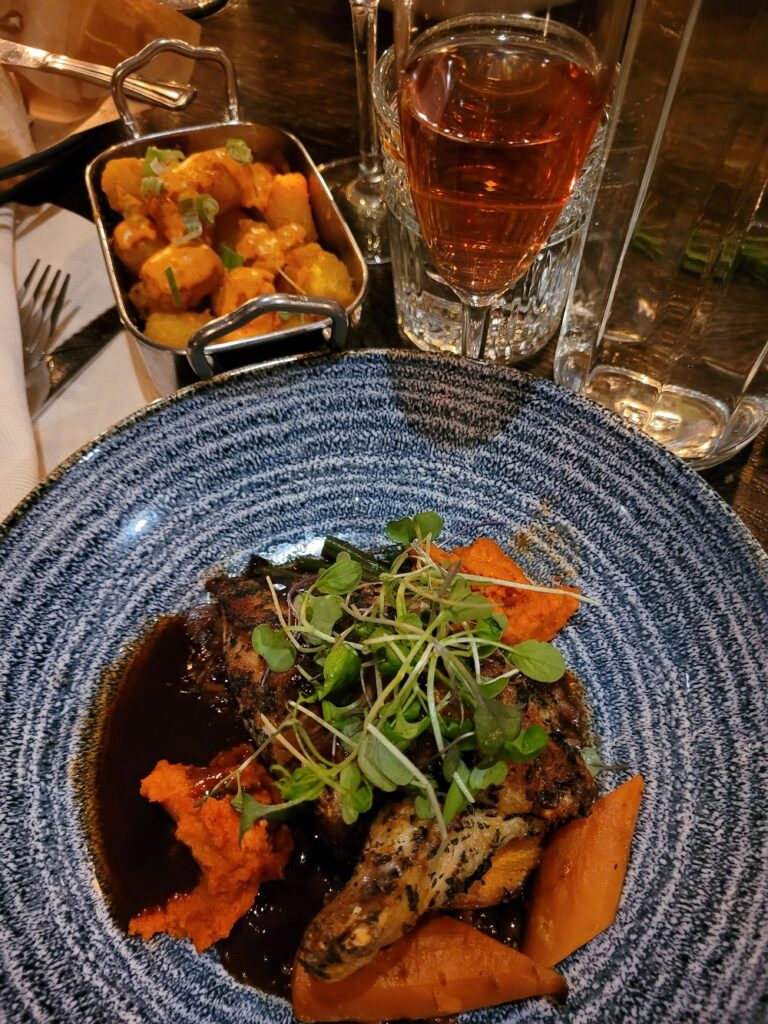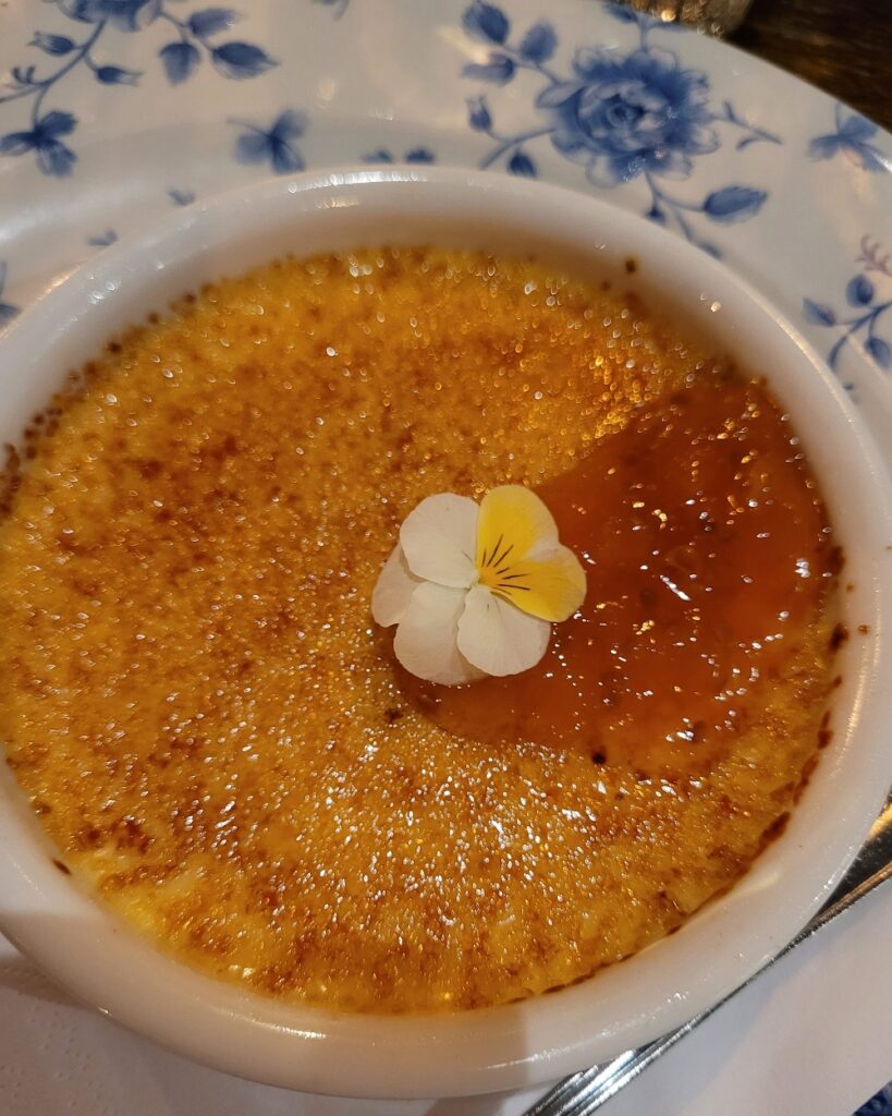 Alakerran Frans & Nicole ravintolassa saimme nauttia herkullisesta illallisesta. Uppouduin kuuntelemaan ja juttelemaan vierustovereiden kanssa niin intensiivisesti, että sain ruoasta nauttia kerrankin hitaasti ja hartaasti. Oli niin hyvää ja herkullista ruokaa, kananpoikaa ja jälkiruoaksi creme bruleeta. Vierustoveritkin kehuivat omia ruokiansa.