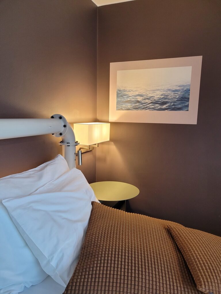 Majoituimme Sokos Hotel Kotkan Seurahuoneella, jossa meriteema tuli ihanasti esille esimerkiksi hotellin käytävillä meriköysineen. Hotellihuone oli suuri ja viihtyisä ja sängyn yläpuolella oli suuri peili. Huoneessani oli myös kylpyamme, mutta olin sen verran poikki pitkästä päivästä, etten kylpyyn asti päätynyt.