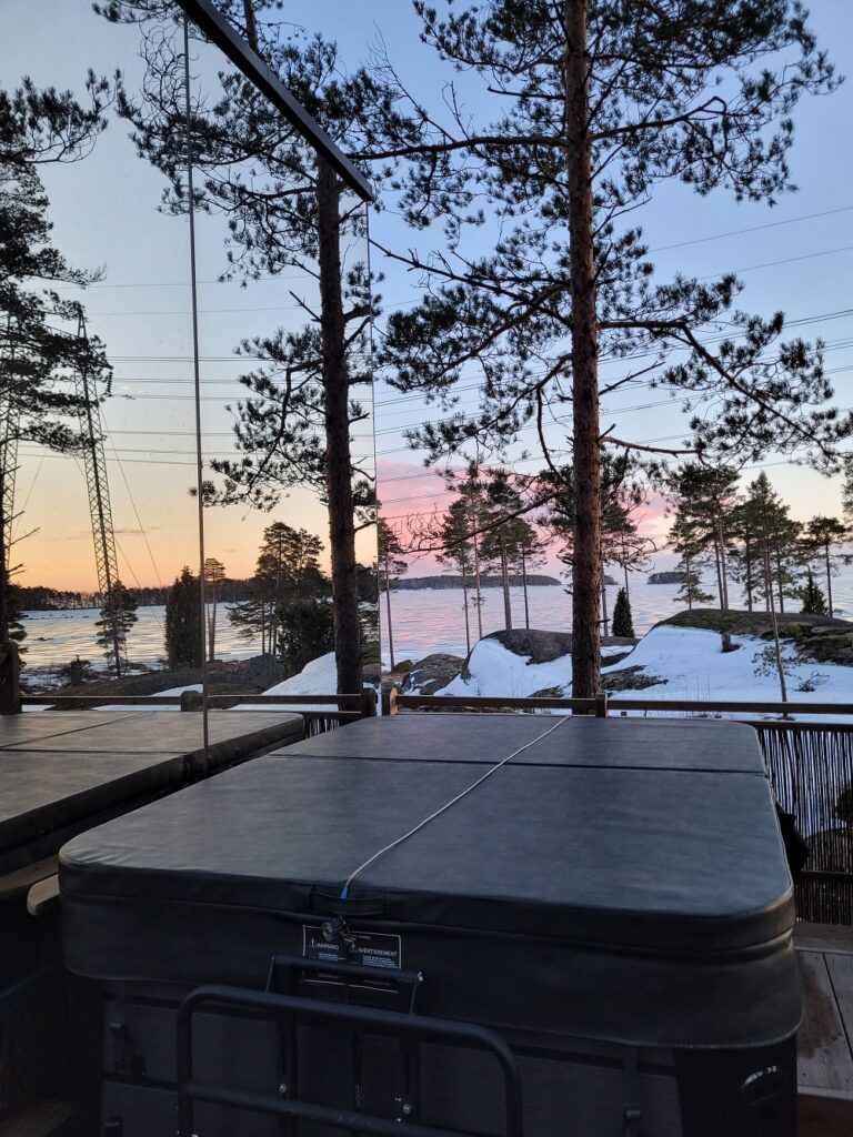 Oma suosikkini oli lasikattoinen puusauna, jonka löylyt ovat pehmeät ja jonka ikkunoista voi ihastella pimenevää iltaa ja tähtitaivasta. Santa Glass saunan voi varata yksityisesti 49 € / tuntihintaan. Myös lämminvesiallas oli ihana suosikki. Voin jo nyt paljastaa, että Kotkan reissun jälkeen kotimme sauna oli aikamoinen pettymys, niin miellyttäviä saunakokemuksia lähti täältä matkaan mukaan.